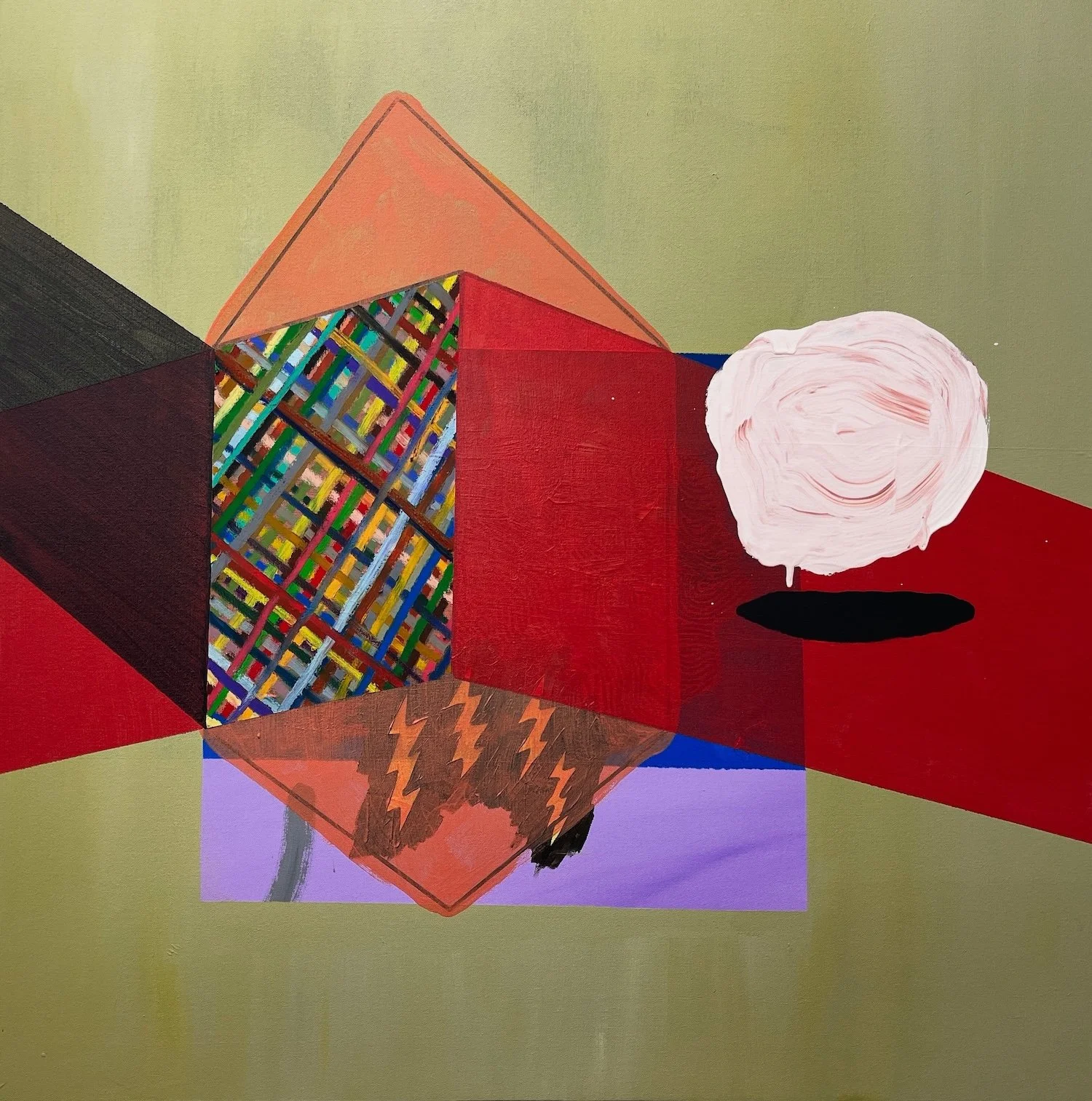 In my paintings, I attempt to create unsettling snapshots in time, where objects float together and intersect, creating tension and drama.